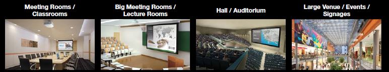 Epson High Brightness Projectors from 7,000 lumens to 30,000 lumens with 11 types of different lenses ranging from 0.35 to 10.11 Throw ratio